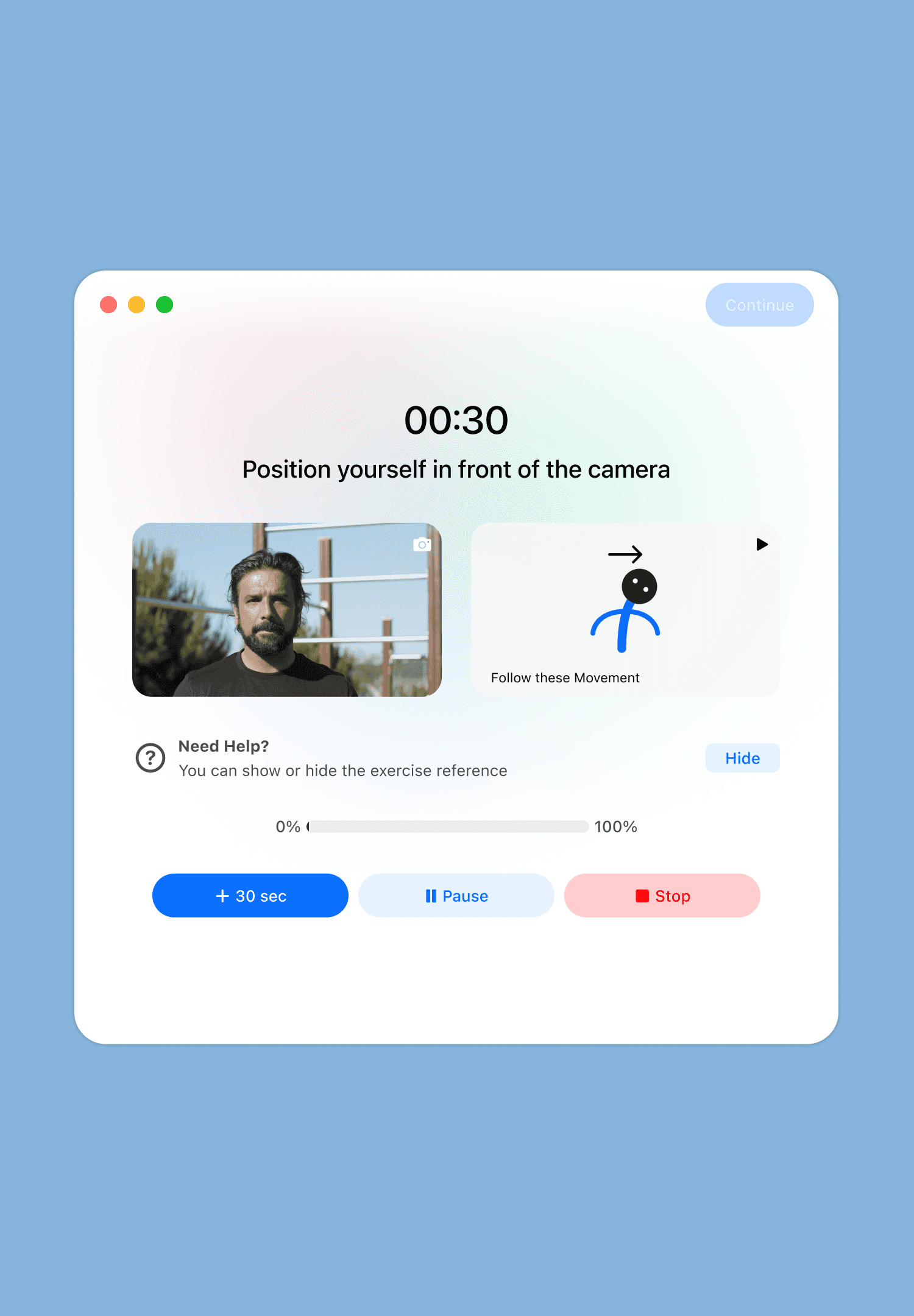 Sketched low‑fidelity flows for onboarding, configuration, notification prompts, workout, and insights to iterate quickly on layout and copy. Developed high‑fidelity macOS‑style screens adopting Apple’s Tahoe language to reduce learning effort for office workers.
